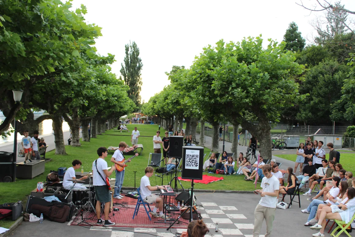 Das Bild unten zeigt ein Beispiel von einem vergangenem Projekt. Das Projekt hiess «Live Music». Die Zuger Band spielte für Jugendliche ein Live-Konzert am Zugersee.
