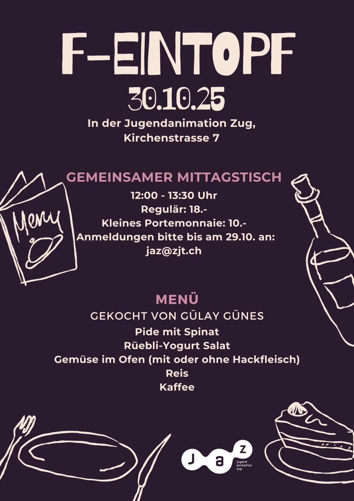 Kulinarische Verwöhnung und bereichernde Gespräche – der monatliche F‑Eintopf in der Jugendanimation Zug.