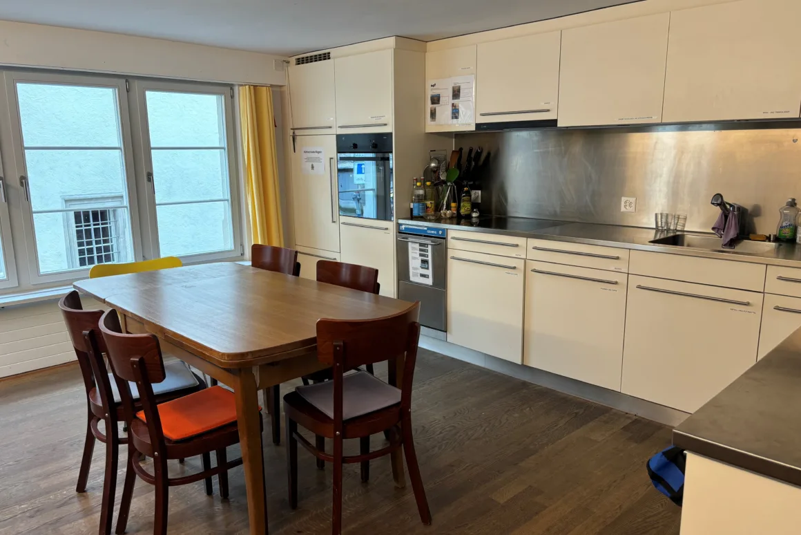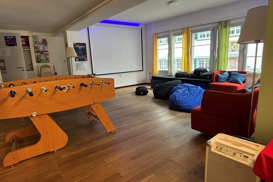 Im EG in der Jugendanimation «Jaz» gibt es einen gemütlichen Veranstaltungsraum mit einer Küche. Der Raum eignet sich als Treffpunkt, aber genauso gut für Sitzungen oder Austausch von Gruppen für maximal 25 Personen.